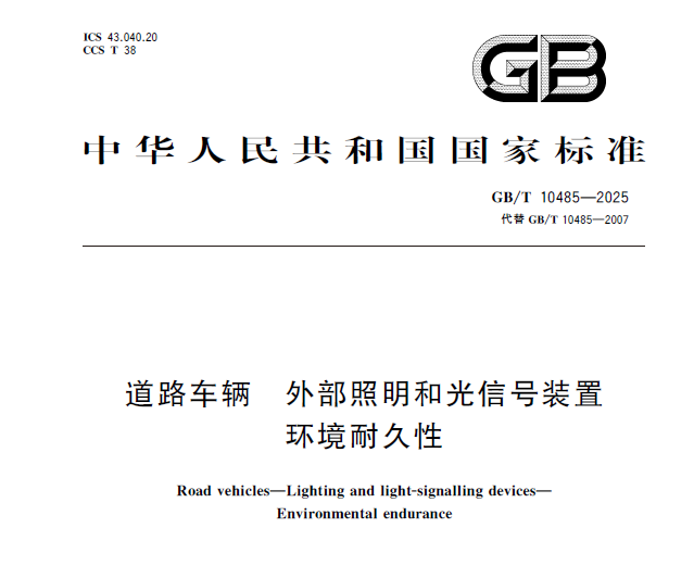 GB/T 10485-2025是一项全面规范道路车辆外部照明和光信号装置环境耐久性试验的国家标准,适用于M类、N类、O类和L类车辆。本次修订在结构、技术内容和试验方法上均有重大更新,主要包括: